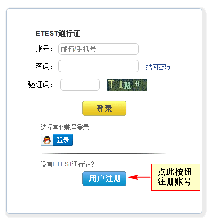 1) 在浏览器中打开 http://passport.etest.net.cn/login